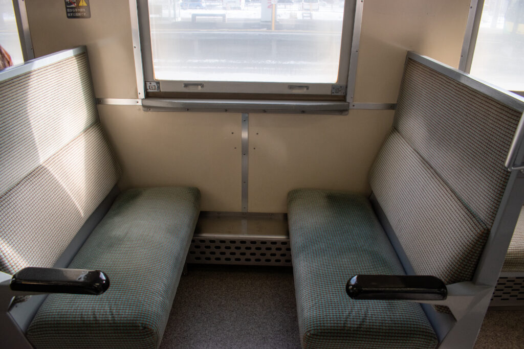 大きなドアステップがあったり、窓が小さかったりと国鉄型客車の名残がいろいろ見られます。
