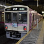 今回、乗車したのは新宿からやってきた急行唐木田行きです。新型車両5000形でやってきました。